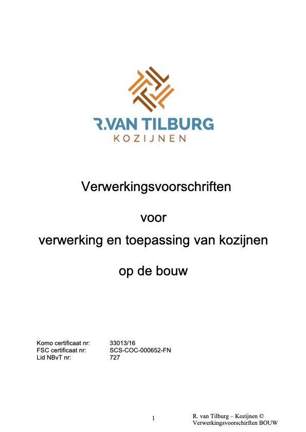 Onze kozijnen worden geleverd inclusief officiële verwerkingsvoorschriften, zodat ze op de bouwplaats altijd op de juiste manier worden verwerkt en gemonteerd. Deze voorschriften bevatten alle technische richtlijnen voor transport, opslag, montage, bescherming tijdens de bouwfase en de uiteindelijke afwerking. Zo waarborgen we dat de kwaliteit en functionaliteit van onze kozijnen volledig behouden blijft.